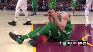 The 2017-18 NBA season tipped off last night with a rematch of last years Eastern Conference Finals pitting the Cleveland Cavaliers against the Boston Celtics.  Just minutes into the first quarter Celtic small Forward Gordon Hayward went up for an alley-oop dunk from guard Kyrie Irving when came down awkwardly on his left ankle.  The photo below shows Hayward in the air before landing on his left leg. The next photo shows Hayward sitting on the court in visible pain and gives a great view of how his ankle looked after the fall.  Those who are squeamish, scroll down with caution.
